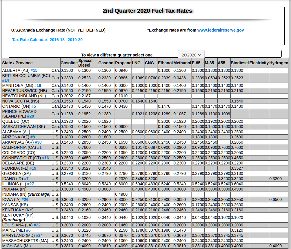 IFTA fuel taxes are collected in all states and jurisdictions that have a state or jurisdiction fuel tax. Oregon does not have fuel taxes but they do issue IFTA accounts. All carriers who operate an apportioned IRP are required to have an IFTA account and a list of states or jurisdictions they operate in. At the end of each quarter you will file your quarterly IFTA fuel taxes. Here is where the value of understanding IFTA turns into lower fuel cost. You owe each state it’s fuel tax based on how many gallons you used while driving in their state. Not how much you bought! What that means is when you buy fuel at the lowest cost BEFORE taxes you will almost always be due a refund at the end of the quarter. Here is how that works using 2nd quarter 2015 IFTA fuel tax rates.