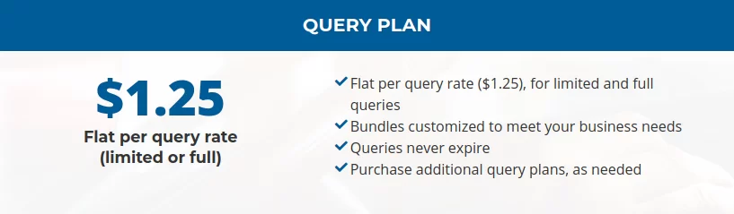 For Independent Owner Operators, I recommend purchasing the “Flat per query rate ($1.25), for limited and full queries.” It is by far the most affordable and does exactly what you need without over paying.